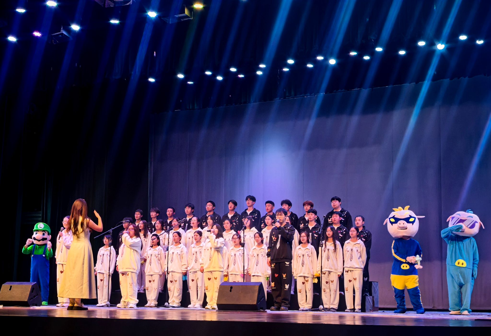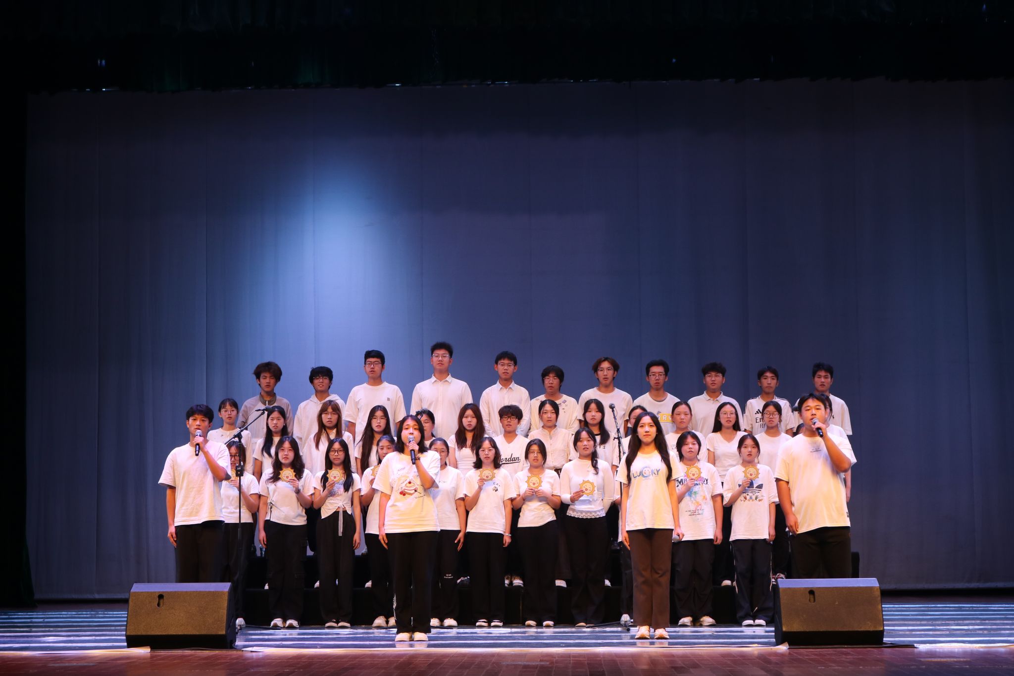 舞台上,新同学们精神饱满,意气风发。他们用嘹亮的歌声、深情的演绎和富有创意的编排,展现了金融学子的蓬勃朝气与家国担当。男生们声音浑厚有力,女生们声线清澈悠扬,和谐的和声、整齐的动作、饱满的情绪,一次次点燃现场气氛。背景屏幕配合着歌曲主题播放着精心制作的画面,或展现祖国壮丽山河,或描绘阖家团圆温馨,或呈现青年奋斗图景,为歌声增添了强烈的感染力。礼堂内歌声飞扬,掌声雷动,浓浓的爱国情与节日喜庆氛围相互交融。
